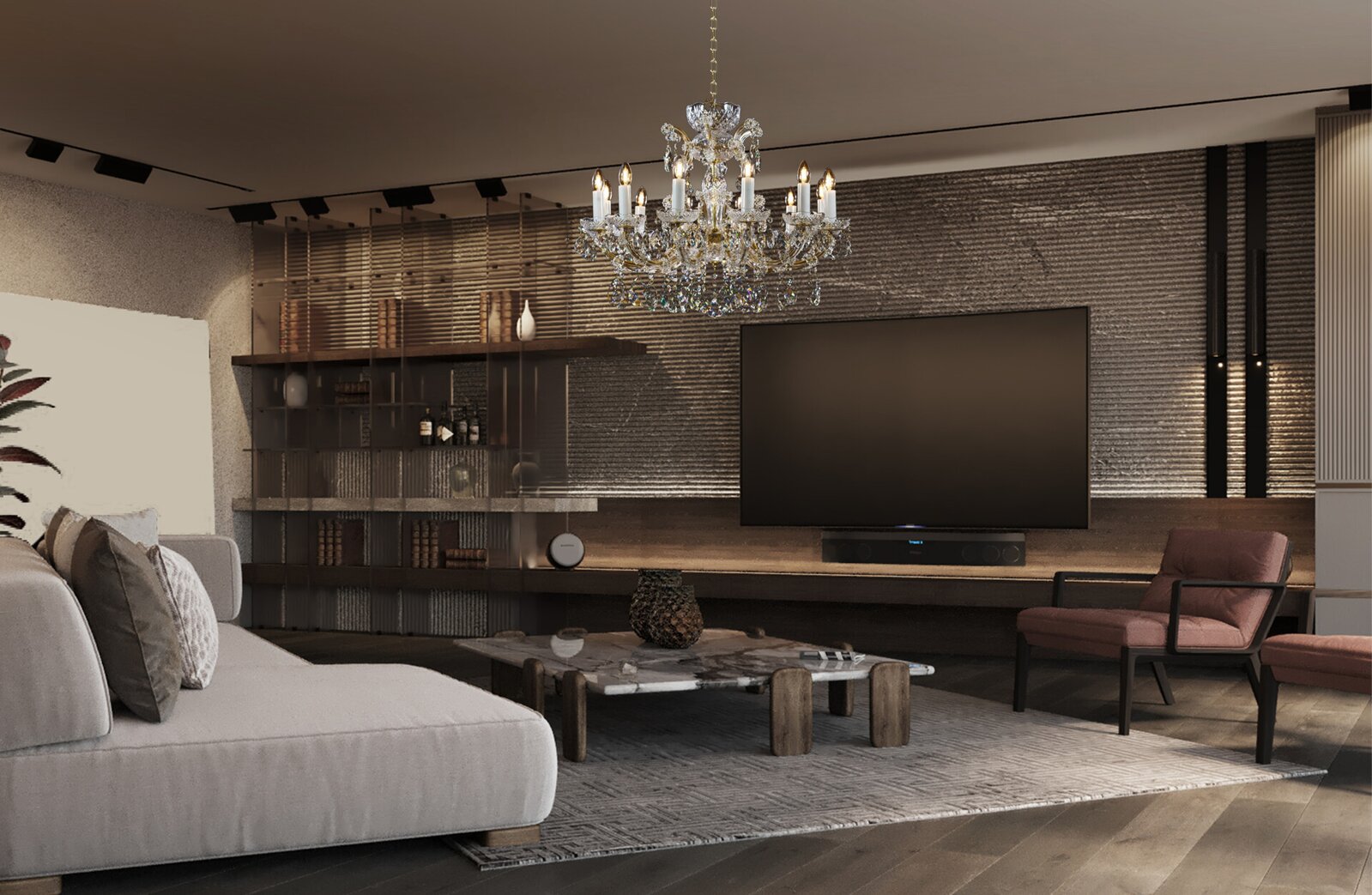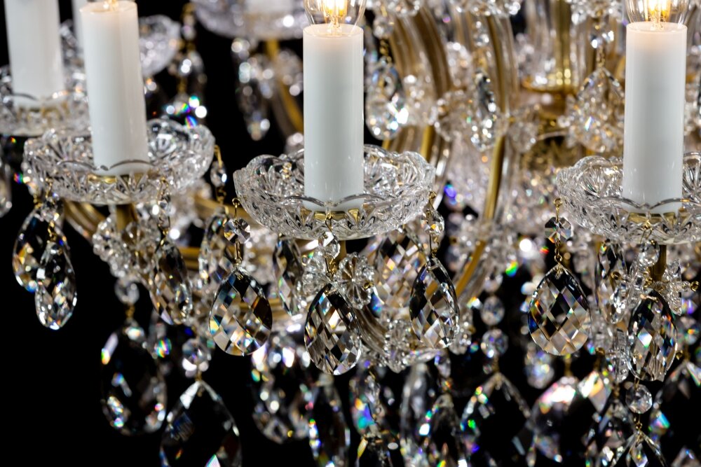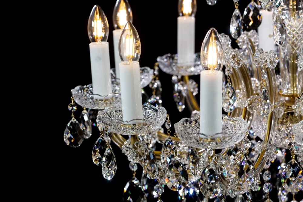 Żyrandol jest nazwany na cześć cesarzowej Marii Teresy, która podziwiała czeskie żyrandole tego typu. Lampy tego typu mają płaskie ramiona stalowe, pokryte z obu stron paskami szkła, które są zabezpieczone rozetami kryształowymi. Ramiona stalowe wykończone są srebrnym lub złotym metalom. Kryształowe zawieszki, dzięki diamentowego cięcia, załamują światło we wszystkich kolorach tęczy.